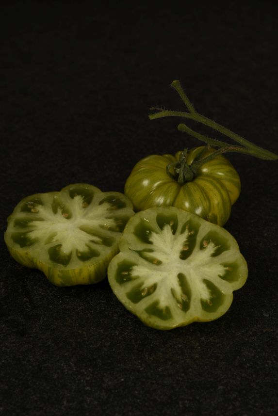 | Info: | Für diese Sorte hat Tom Wagner seine eigene Züchtung Green Zebra mit der Sorte Glacier gekreuzt. Die Pflanze war problemlos und produziert noch Ende Oktober Früchte, der Ertrag war gut. Sie gilt als kältetolerant. |