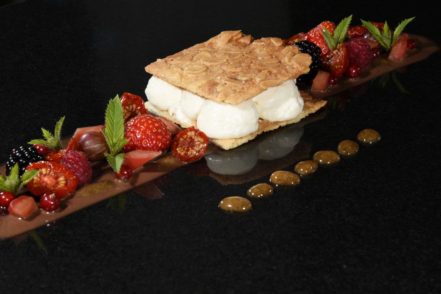 Tipp: Wir haben zum Dessert noch eine dunkle Schokoladensoße gegeben.