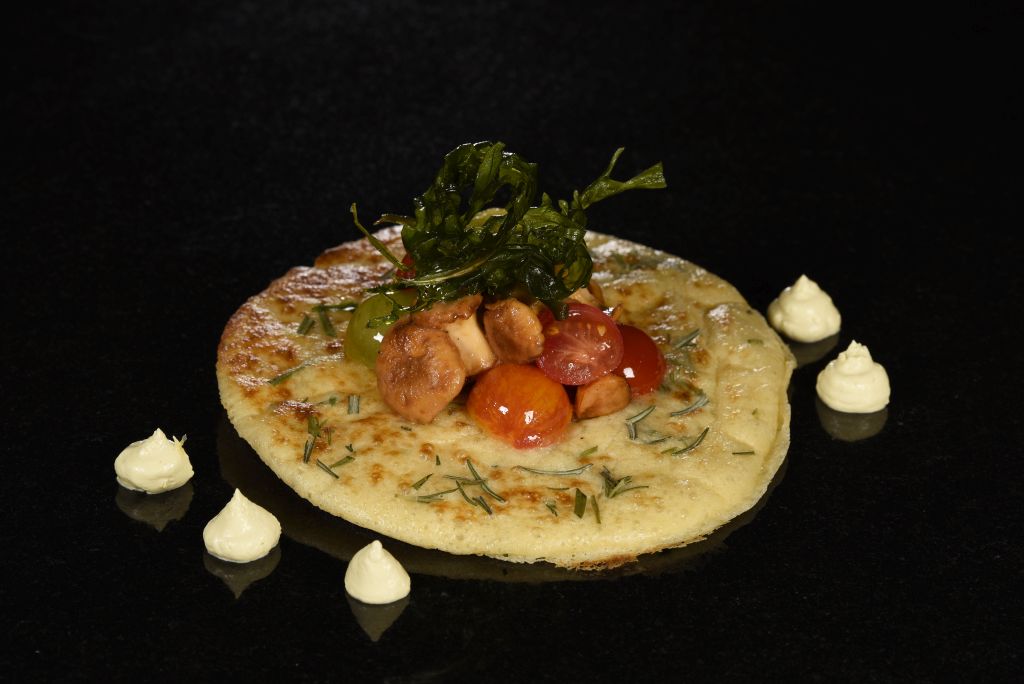 Rosmarincrêpe mit Tomaten und Pfifferlingen