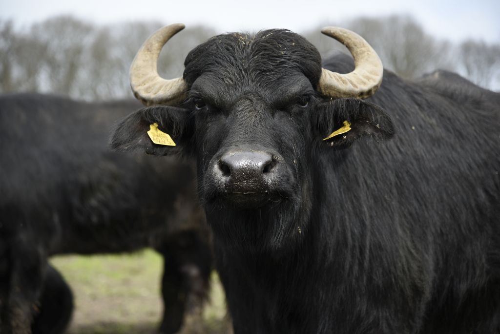 Der Blick täuscht, die sind ganz lieb; Wasserbüffel auf dem Hof Kragemann in Bocholt.