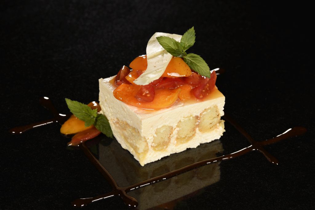 Tiramisù mit Tomaten, Aprikosen und Tomatensirup
