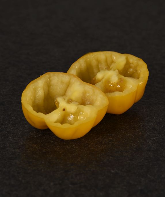 | Info: | Die Tomatenfrüchte sehen von außen und innen einer Paprika sehr ähnlich und lassen sich auch gut im Kühlschrank aufbewahren. |